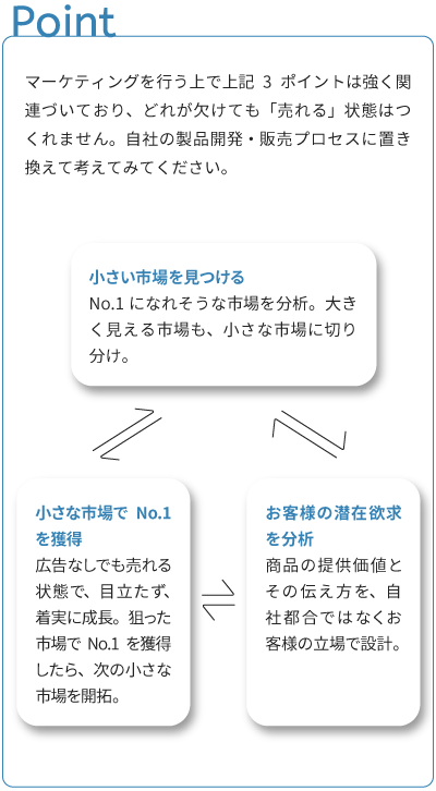 この「小さな市場でのNo.1」を積み重ねて、大きな市場でのトップを目指します。